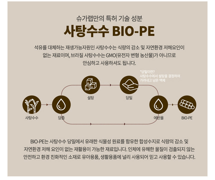 사탕수수(식물성)의 당밀에서 추출되는 BIO-PE 성분으로