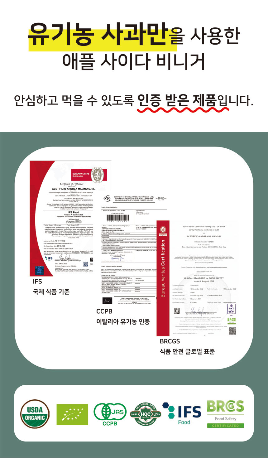 이탈리아 농무부에서 인정한 유기농 사과만을 사용하여