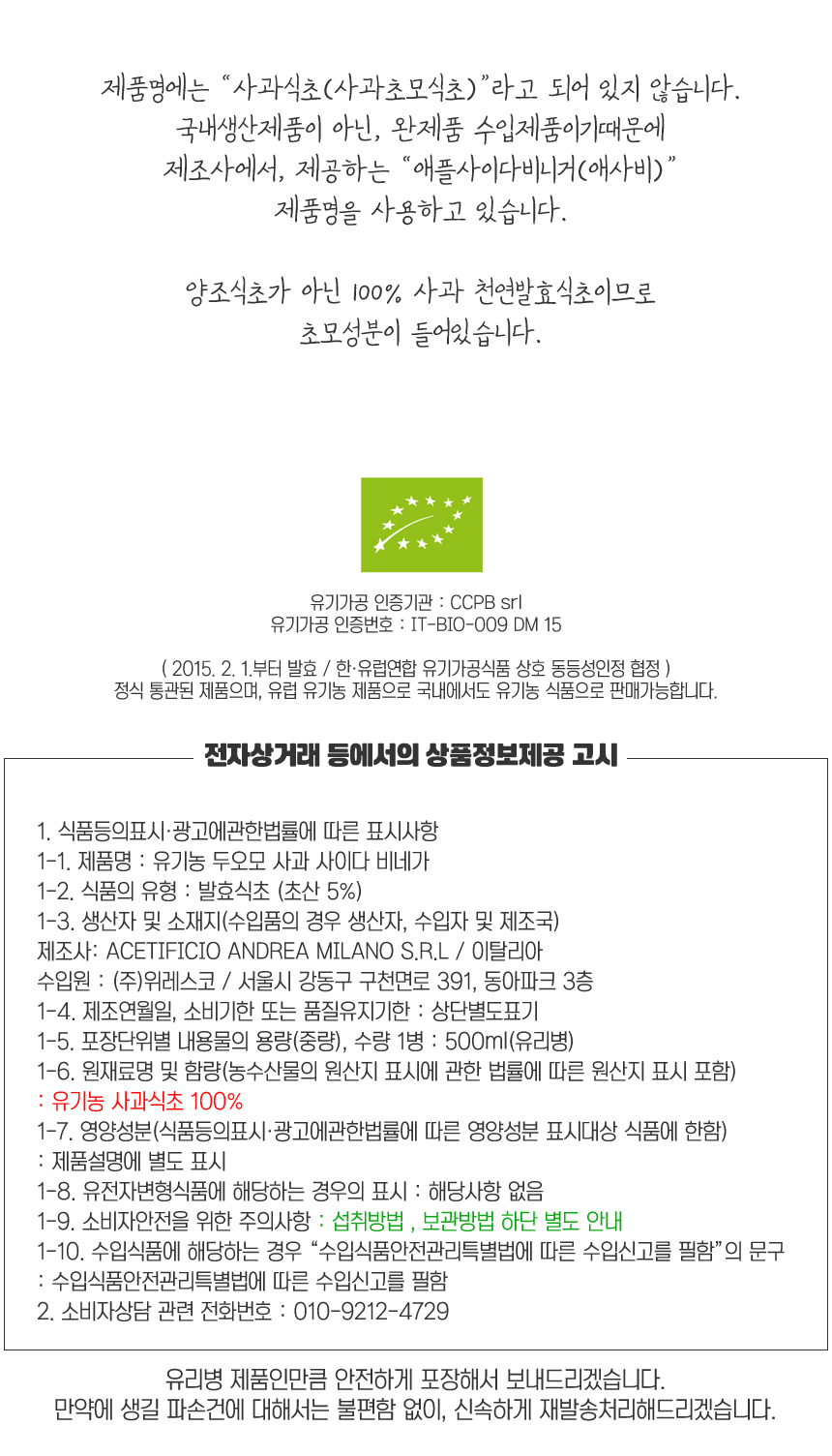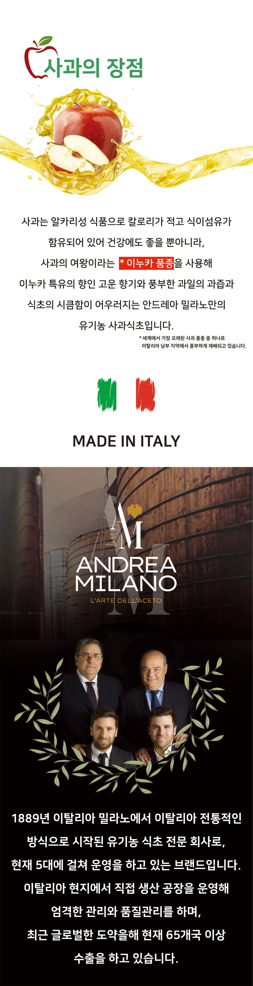 안드레아 밀라노의 사과식초는 저온살균을 하지 않아