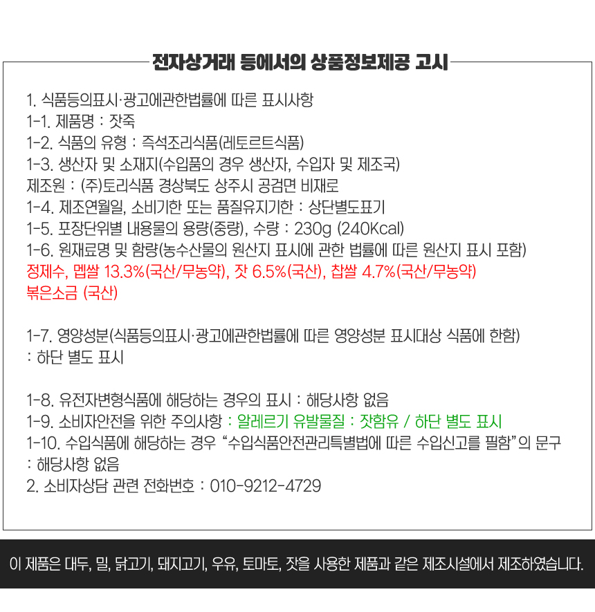 국내산 팥죽 230g