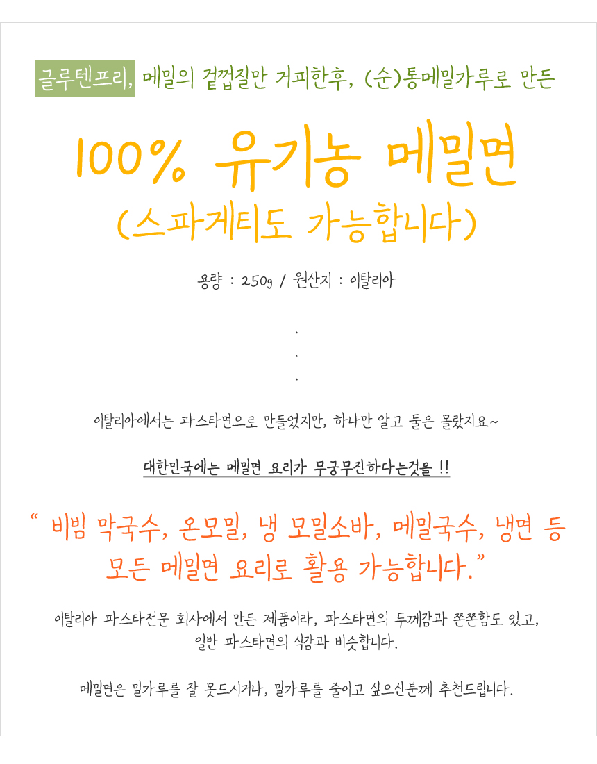 냉면 등 모든 메밀면 요리로 활용 가능합니다.