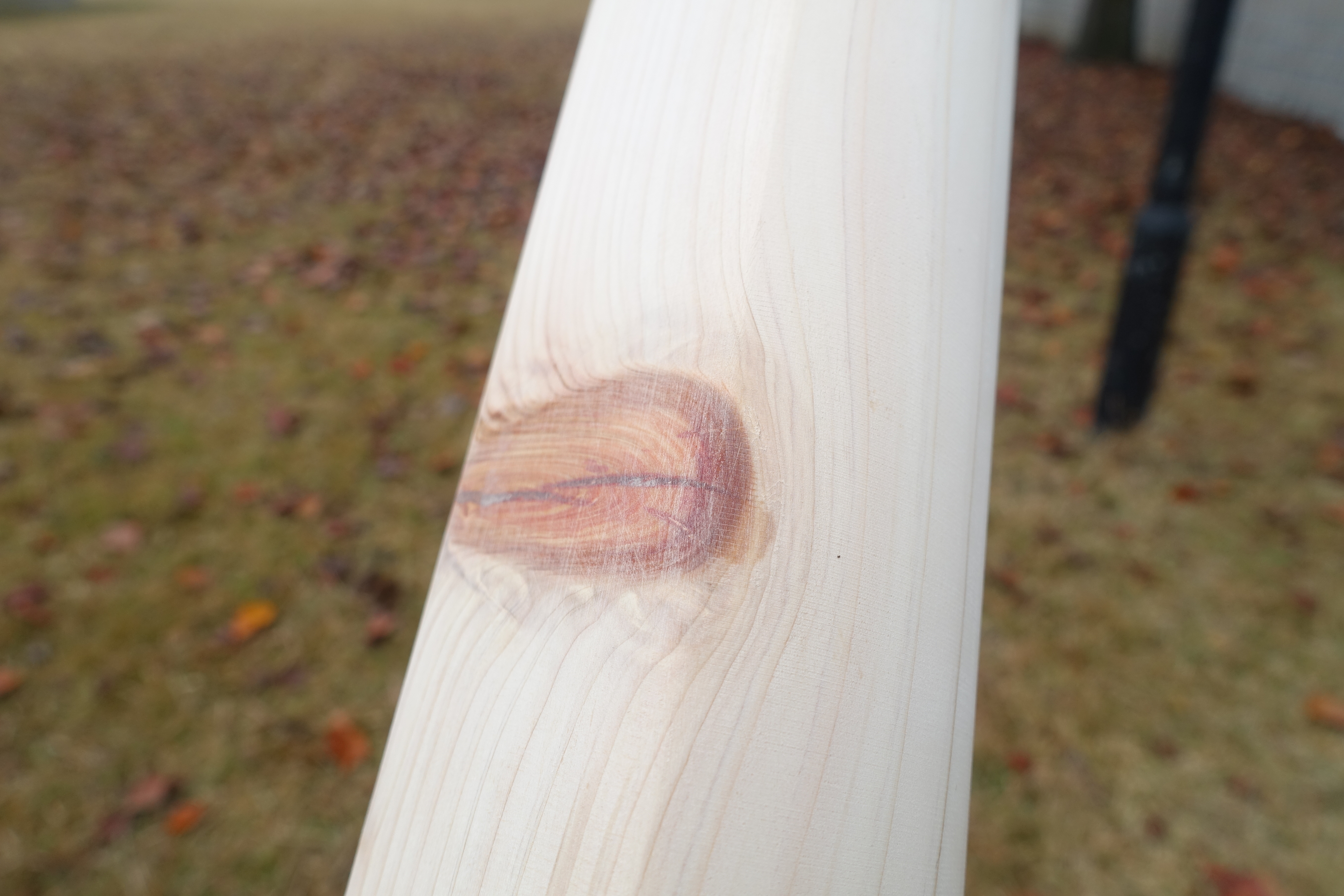 옹이가 있는 나무는 더 단단합니다. 옹이부분에는 편백수액이 더 많이 들어있습니다. 옹이 없는 제품이 깔끔하고, 보기에는 좋은건 어쩔수 없지만, 옹이있는 제품이 더 단단합니다.