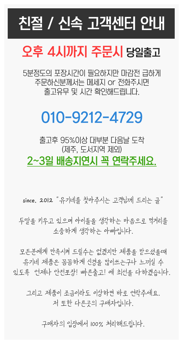 · 배송은 입금확인된 날짜로부터 1~3일 소요되며 최대 7일 이내 제공됩니다. ( 공휴일, 기상악화 등 불가피한 상황에 따라 추가 지연될 수 있습니다.)