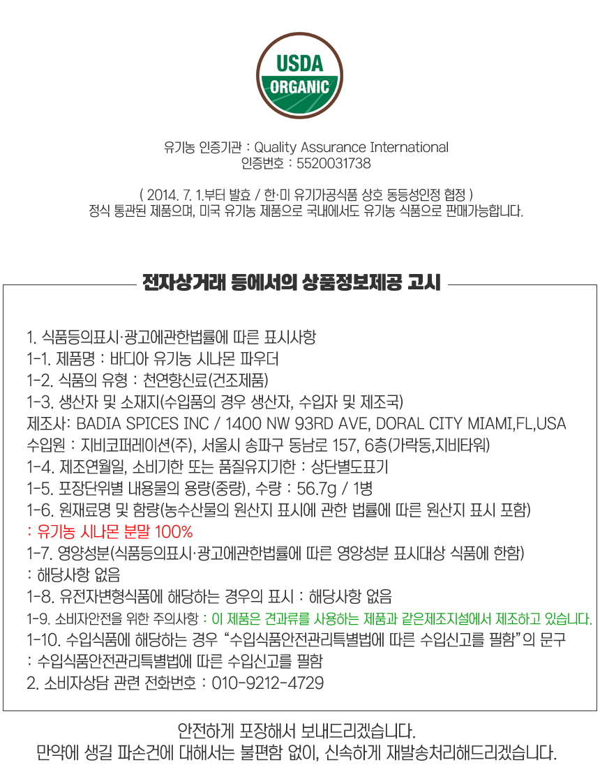 바디아 유기농 계피가루 56.7g