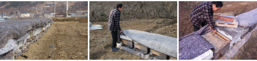 꿀벌이 얼어 죽지 않도록 따듯하게 담요로 덮어주어야하며