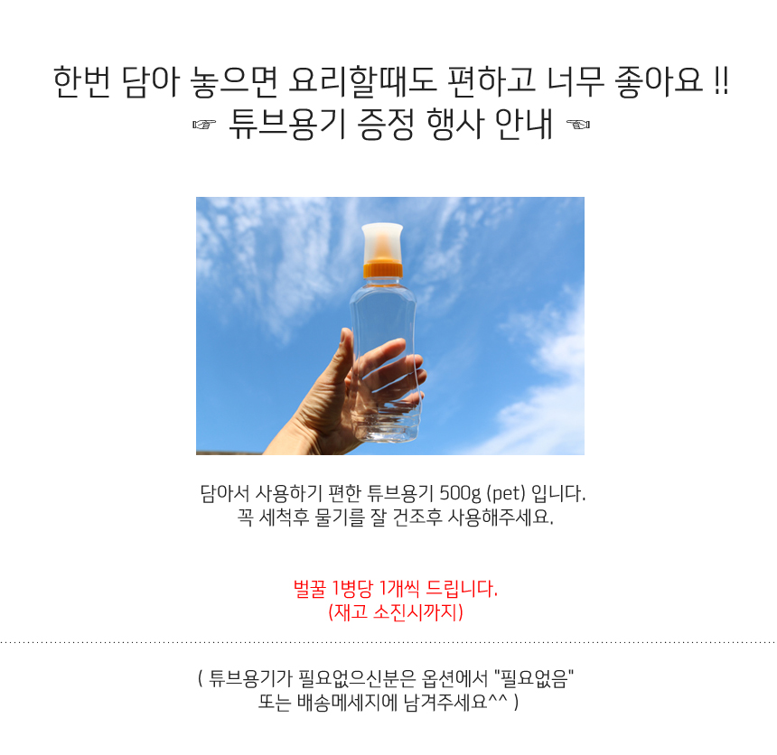 생각되오니, 꿀 2병주문후, 튜브용기 1개만 필요시,