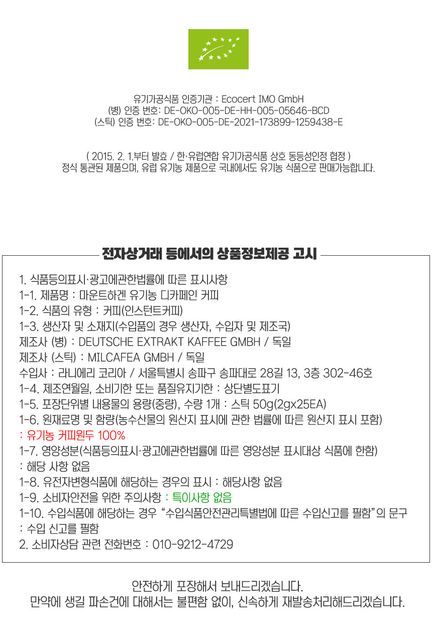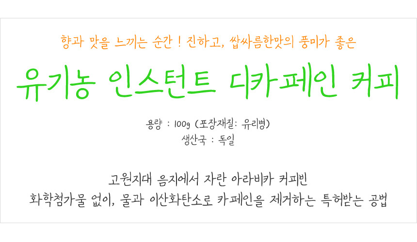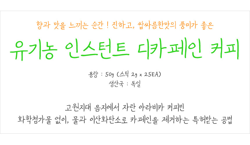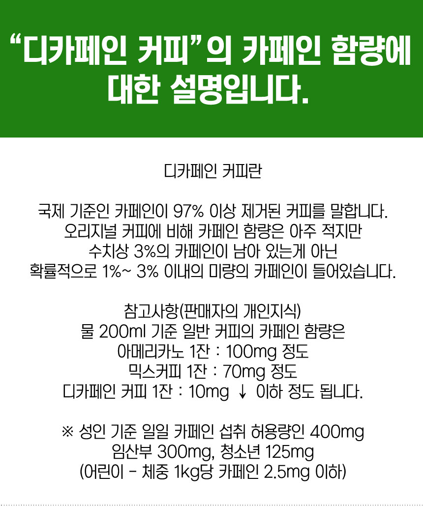 커피원두 원산지 : 디카페인 커피 (협동 조합 HOAC, 파푸아 뉴기니. 코카, 페루. 콤사 온두라스)