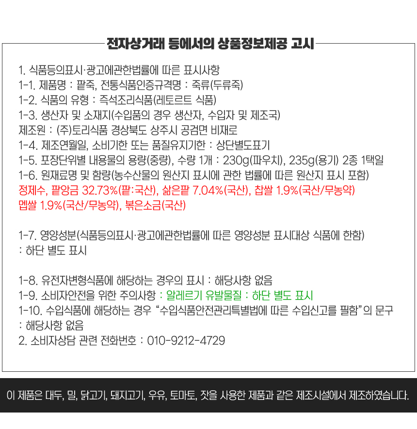 멸균 제품으로, 데우지 않고 바로 드실 수 있습니다.
