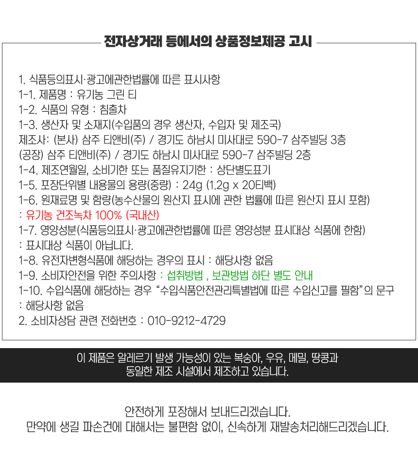 유기농 그린티 녹차 24g(1.2gx20티백)