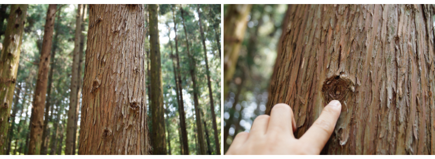 편백나무는 잔가지가 많아 옹이가 많이 있는게 특징입니다.