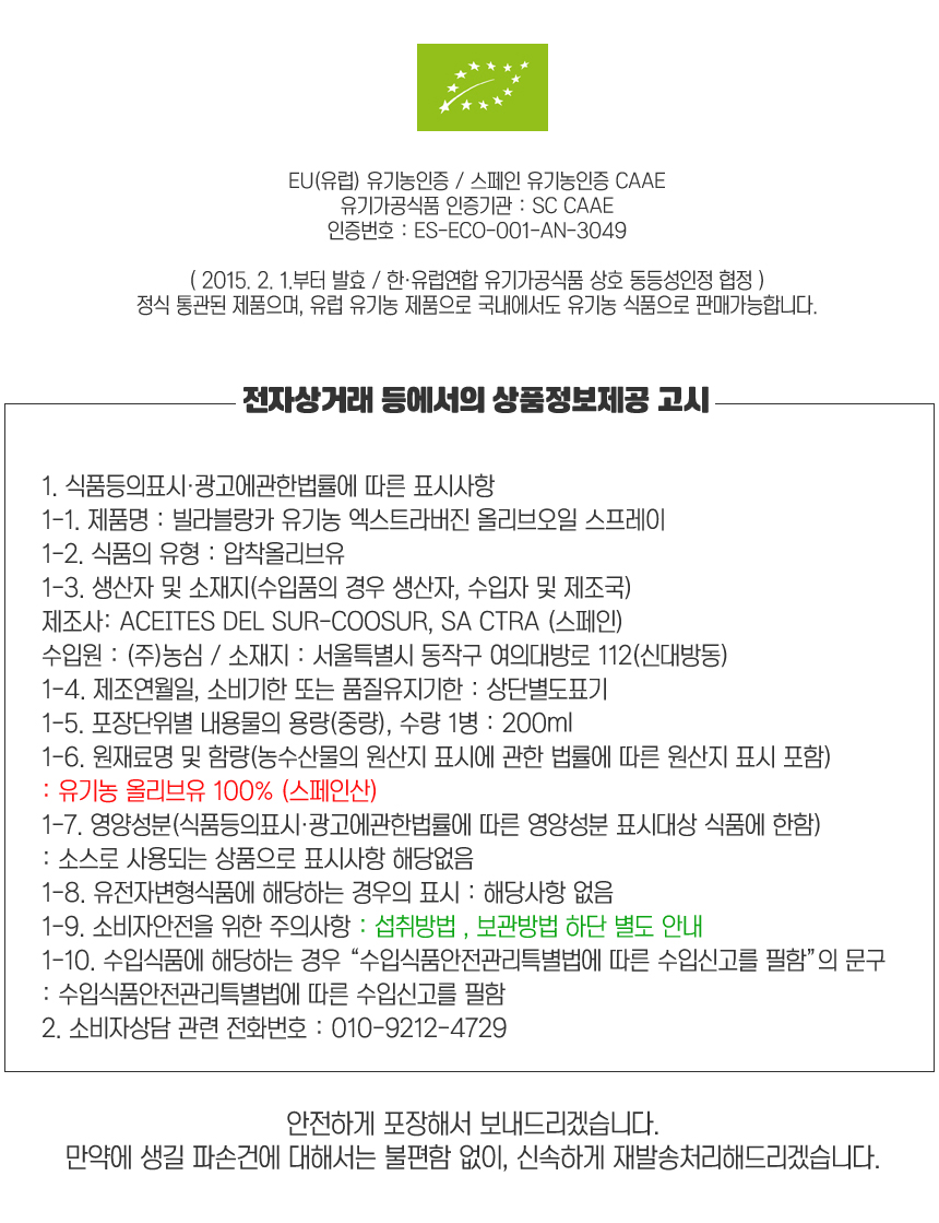 스프레이 방식으로, 샐러드용으로 좋으며,