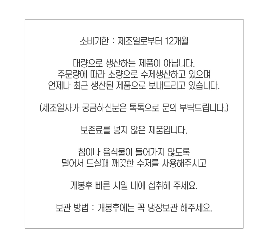 · 구매자가 배송지 주소를 잘못 기입한 경우, 반송/재발송 모두 택배비를 부담하셔야 합니다. (꼭 정확한 주소를 기입해 주세요)