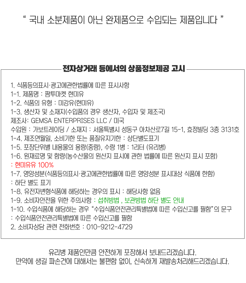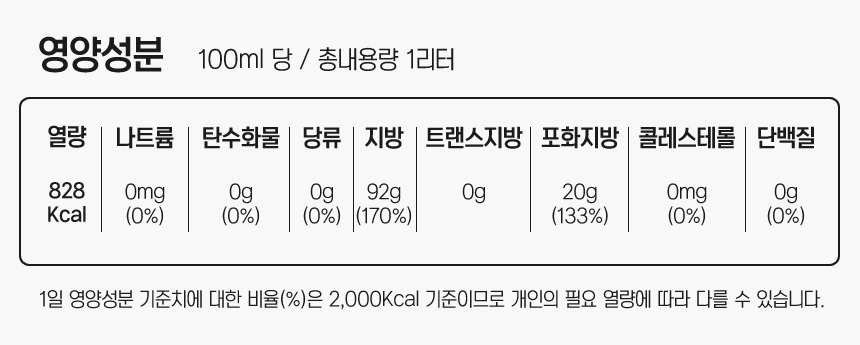 본제품은 EXPELLER PRESSED (상온 압착 방식입니다.)