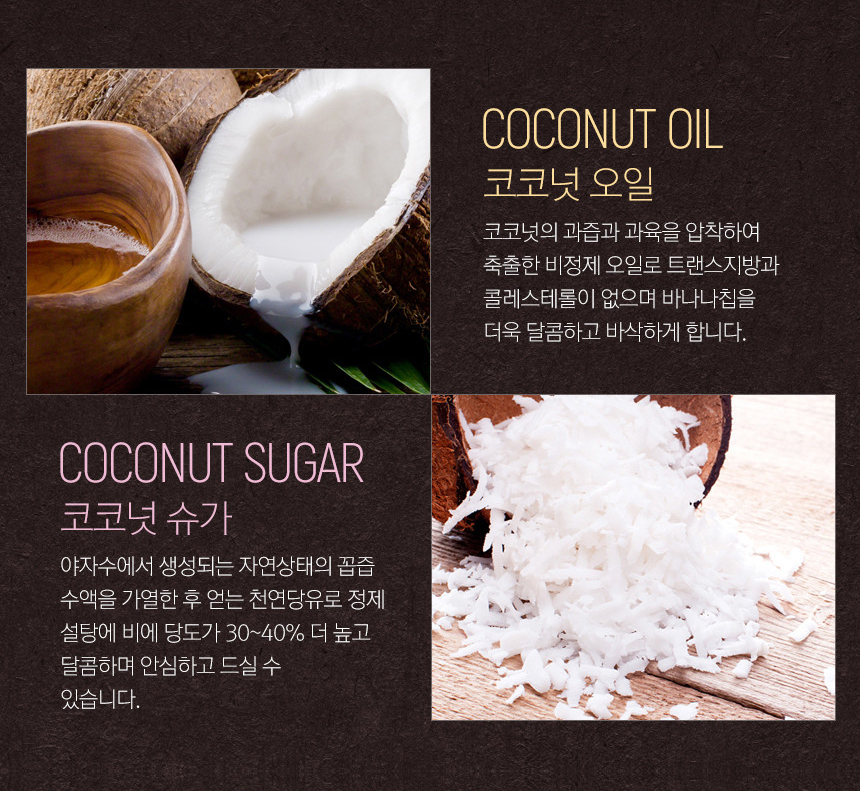 설탕이나 인공감미료 대신, 코코넛슈가를 사용하였으며