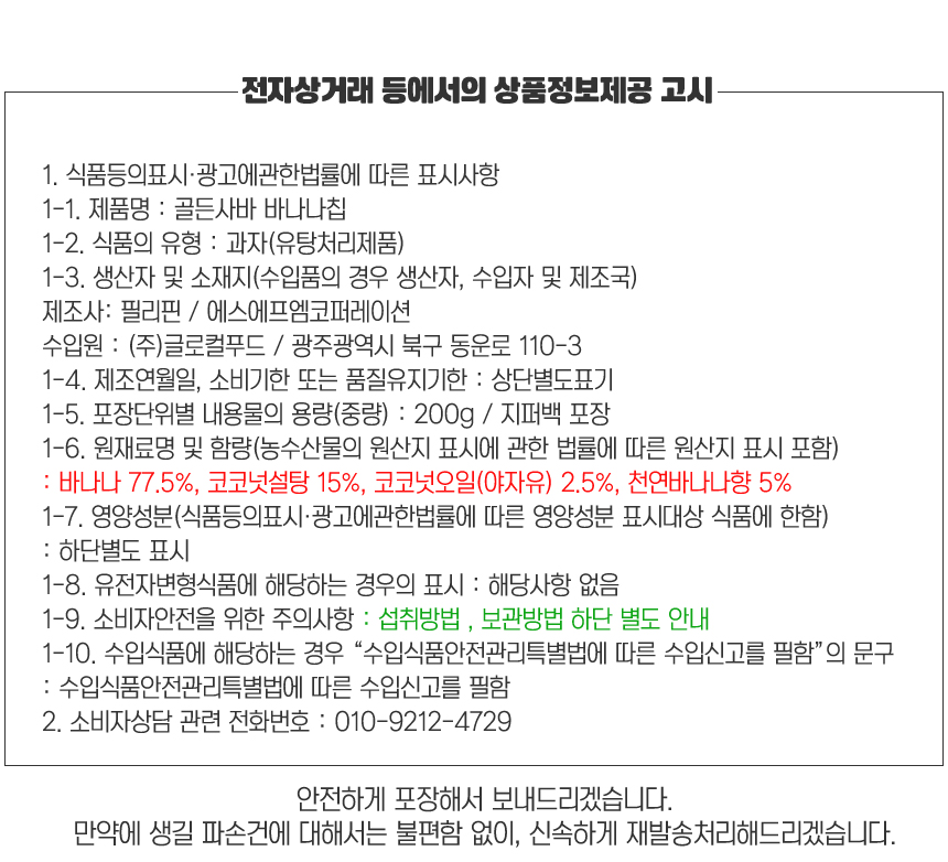 한국인들이 가장 선호하는 골든사바 바나나칩!