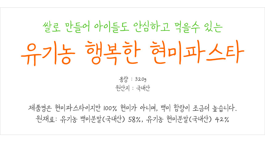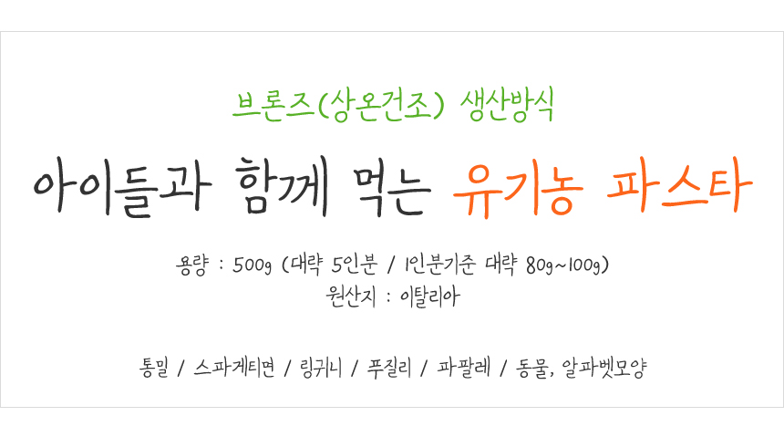 고유의 단백한 맛과 고소함을 느낄 수 있는 유기농 파스타