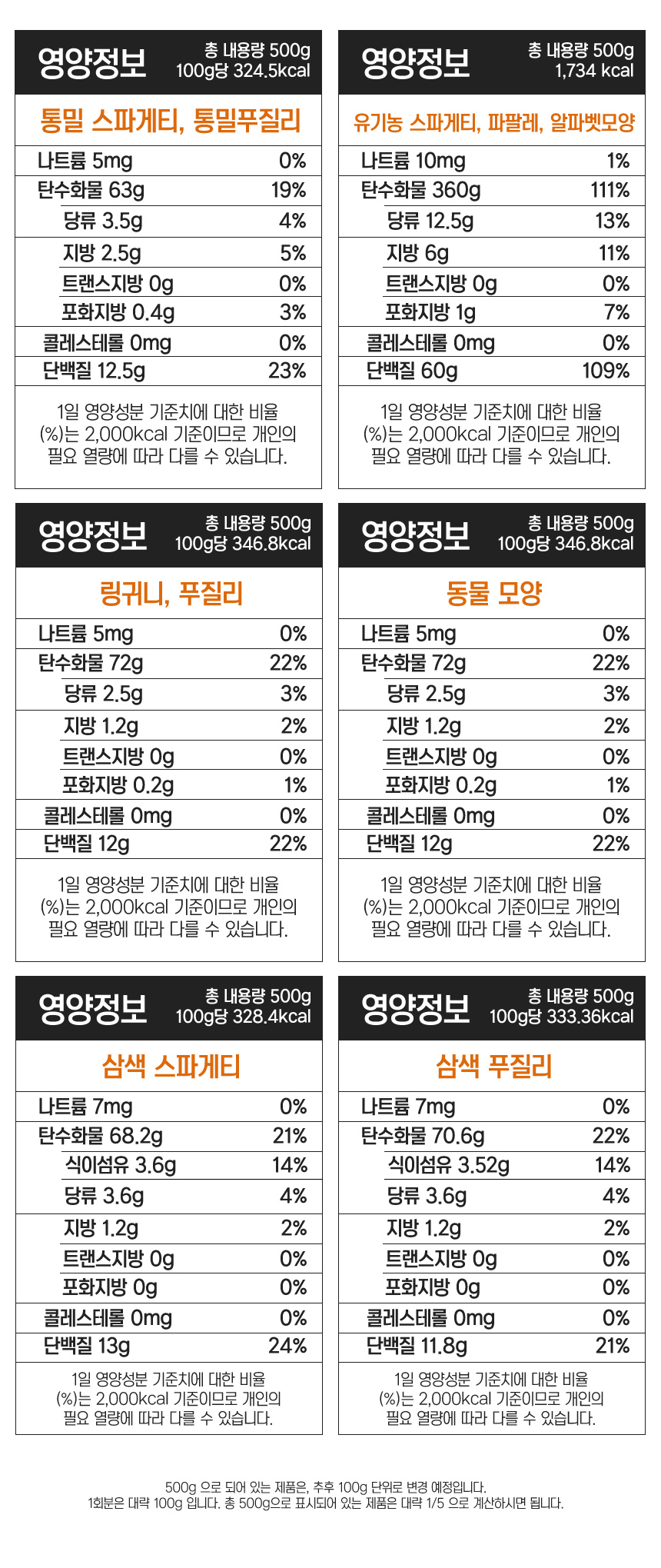 제품의 표면에 양념이 잘 혼합되며 조리후에도 파스타의
