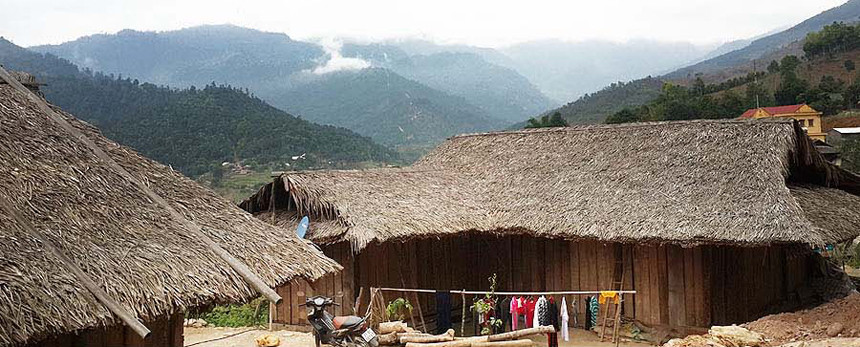 공정무역을 통해 소수민족의 마을에는 비탈진 흙 길이