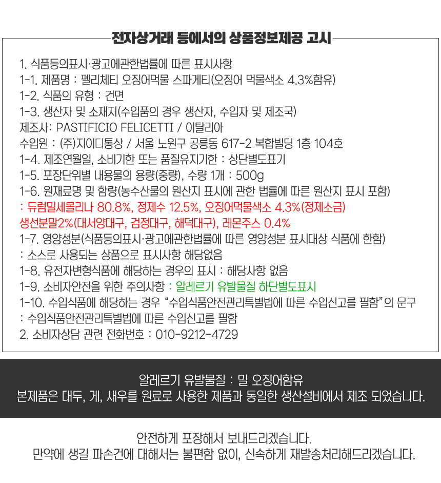 제품의 표면에 양념이 잘 혼합되며 조리후에도 파스타의