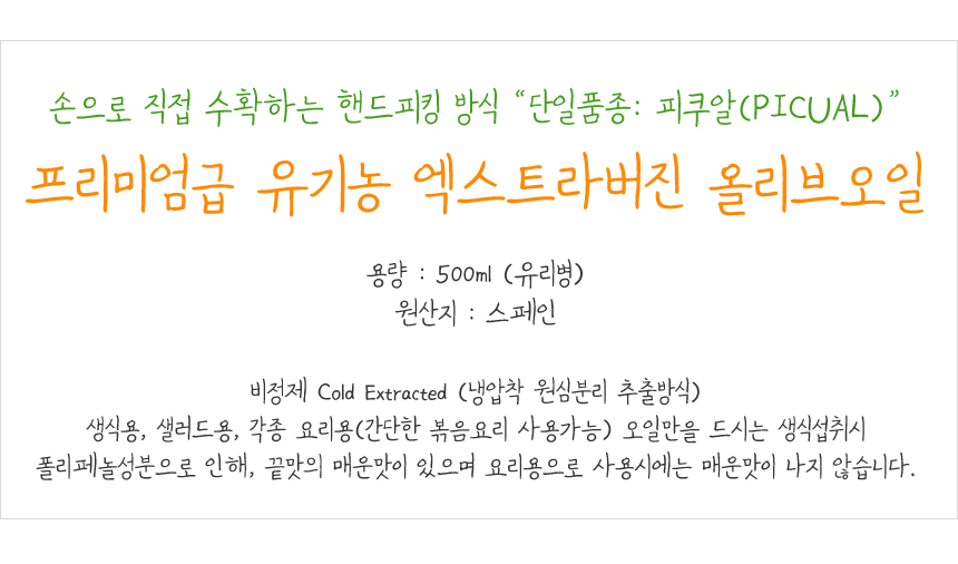 handpicked , 단일품종 : 피쿠알(PICUAL)