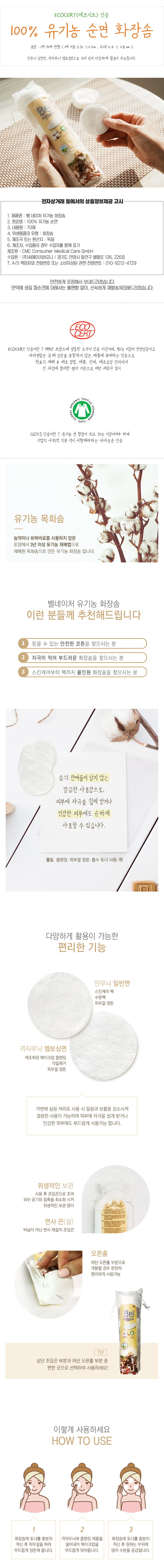 100% 순면 유기농 화장솜 70매
