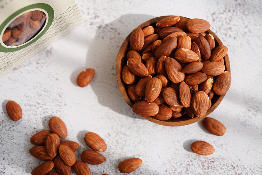 아몬드의 100g당 칼로리는 597Kcal입니다.