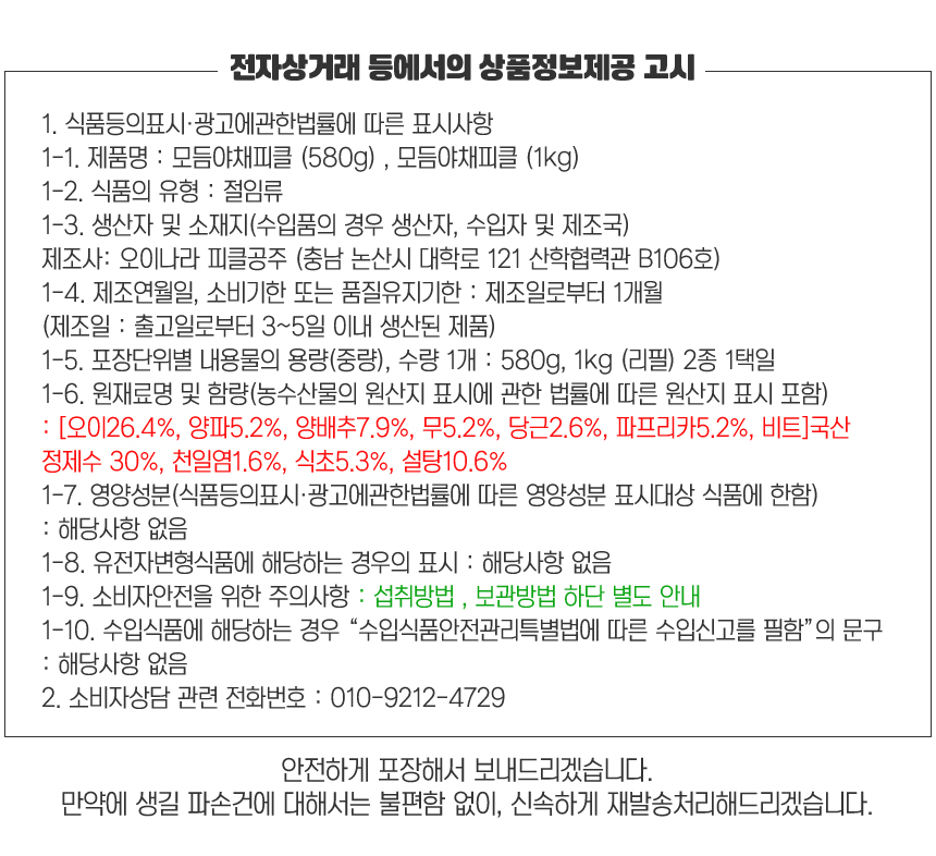 1. 모듬 야채피클 580g (PET용기)