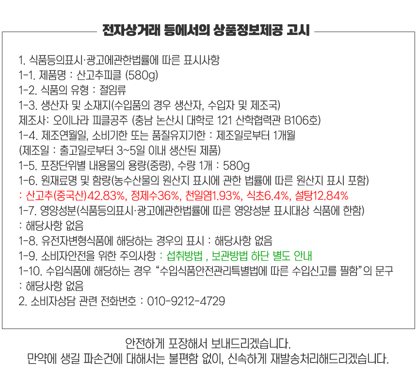 3. 산고추 피클 580g (PET용기)