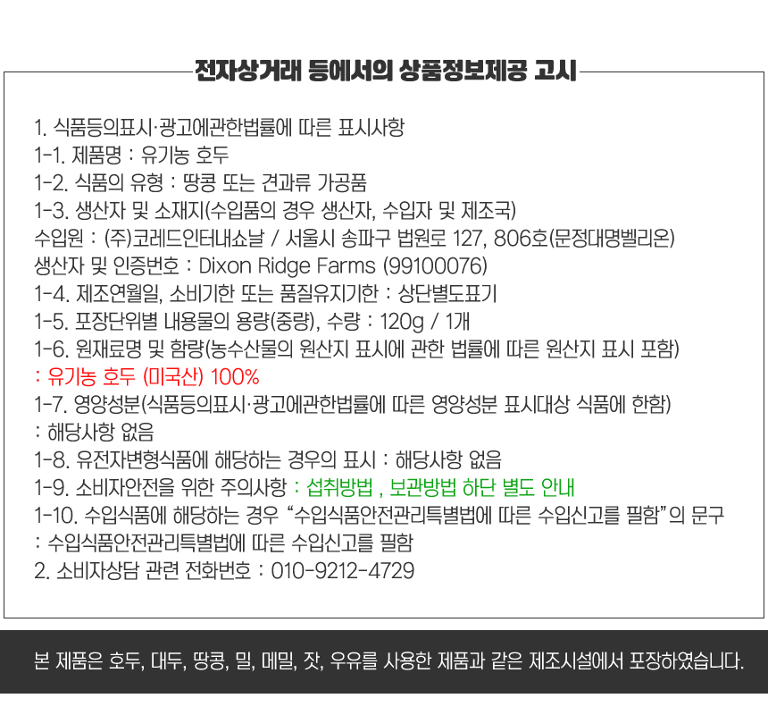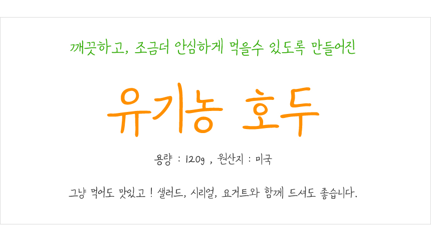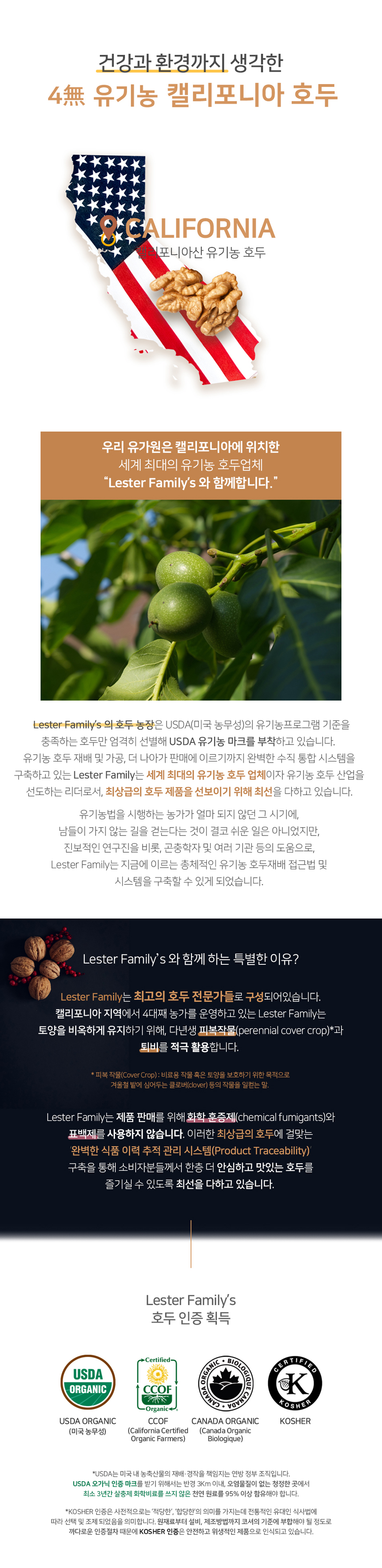 부드러워 먹기편한 캘리포니아산 유기농 호두 120g