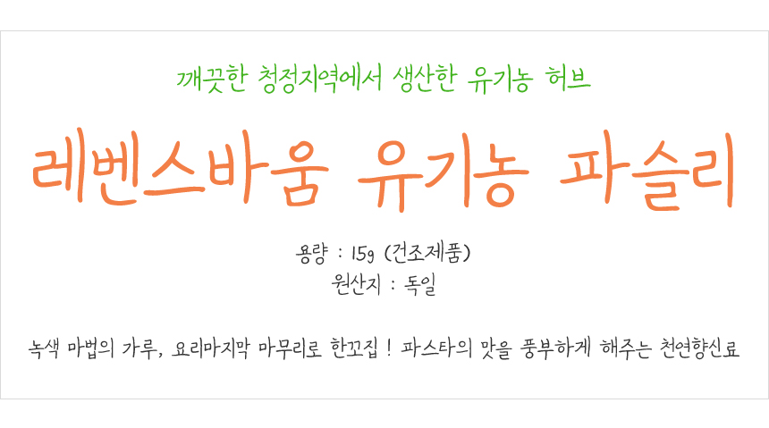 파슬리는 진한 향과 상큼한 맛을 가진 향신료로