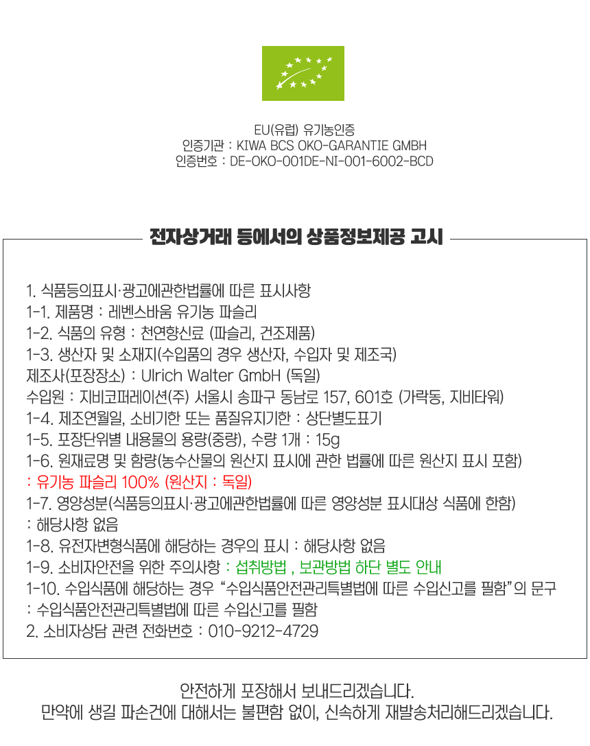 유기농 제품 특성상 수입시 완전 밀봉을 위해