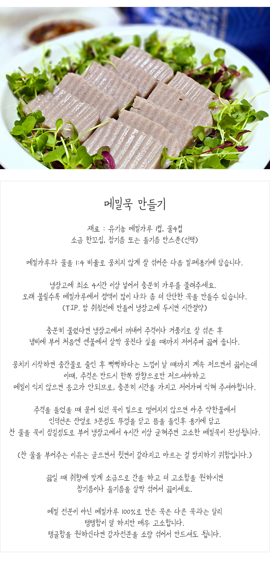 메밀가루 450g, 물 400ml, 베이킹파우더 1큰술