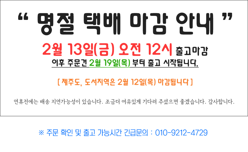 · 예약 발송 상품은 상 품 상세 설명에 안내한 배송관련 정보를 반드시 확인 후 구매해 주세요.