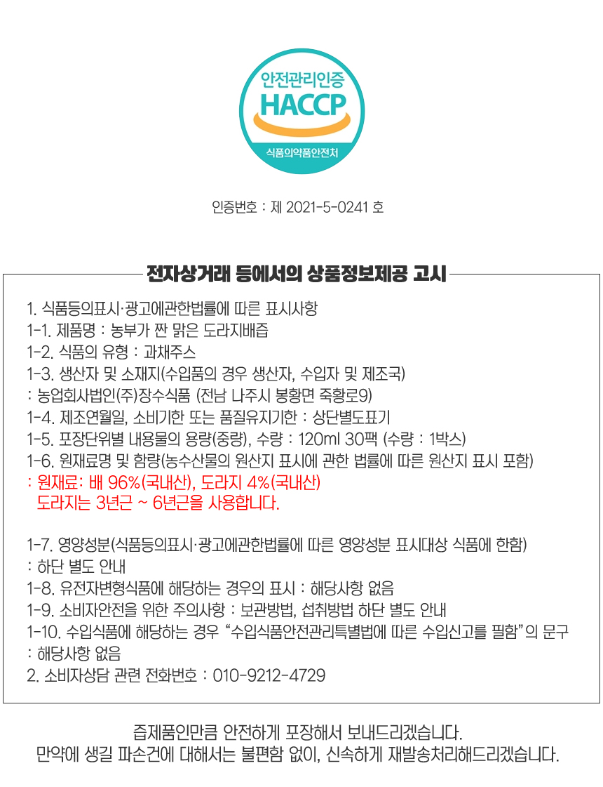 답변. 도라지배즙은 쓴맛이 조금 나지만, 저희제품은