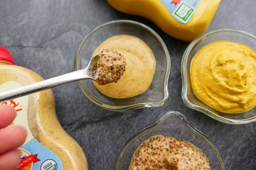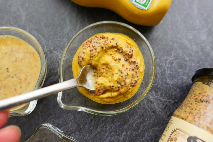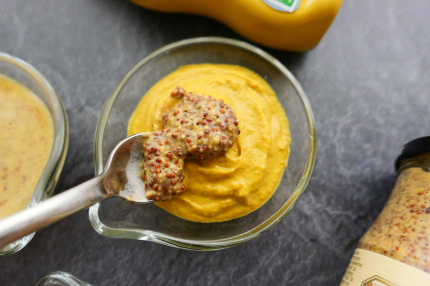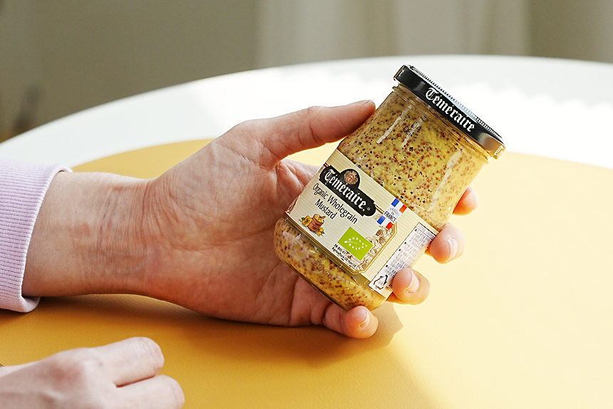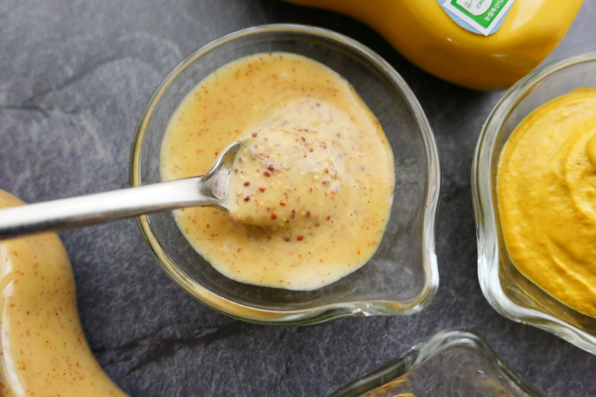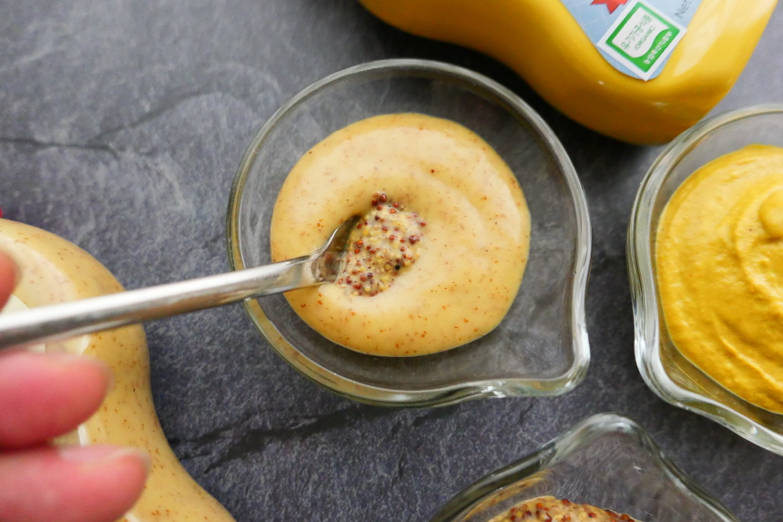 겨자씨가 갈아지지 않고 그대로 씹히는 머스타드로,