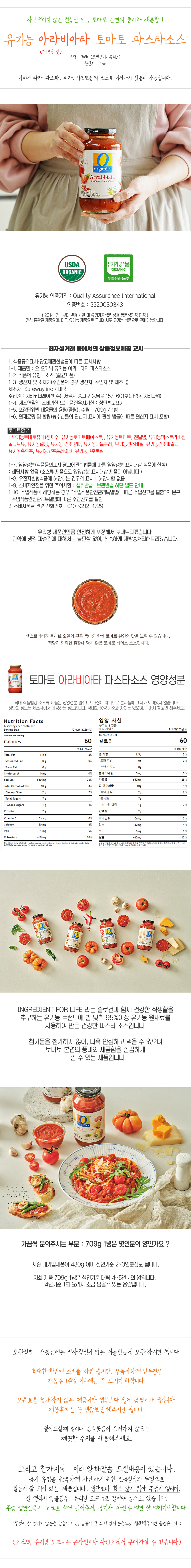 유기농 바질 토마토 파스타소스 709g 토마토퓨레 페이스트 스파게티소스