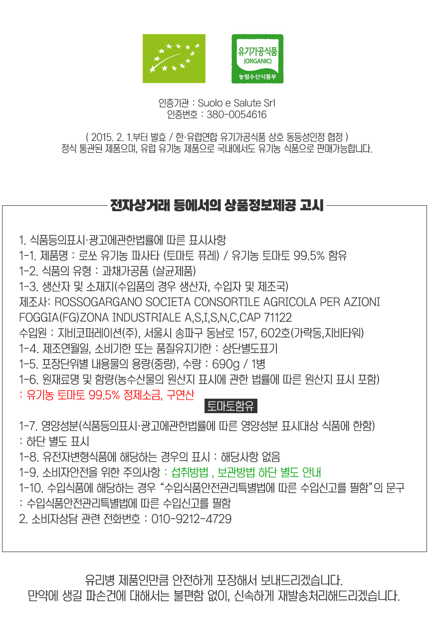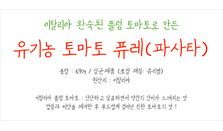 유기농 갈릭 토마토 파스타소스 709g 토마토퓨레 페이스트