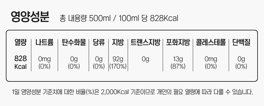 ※ 불포화지방은 영양성분 표기사항이 아니므로 표기하지 않습니다.
