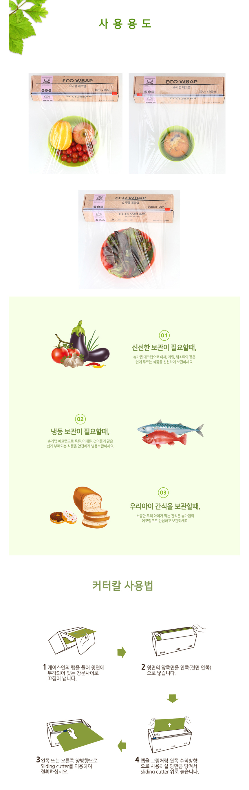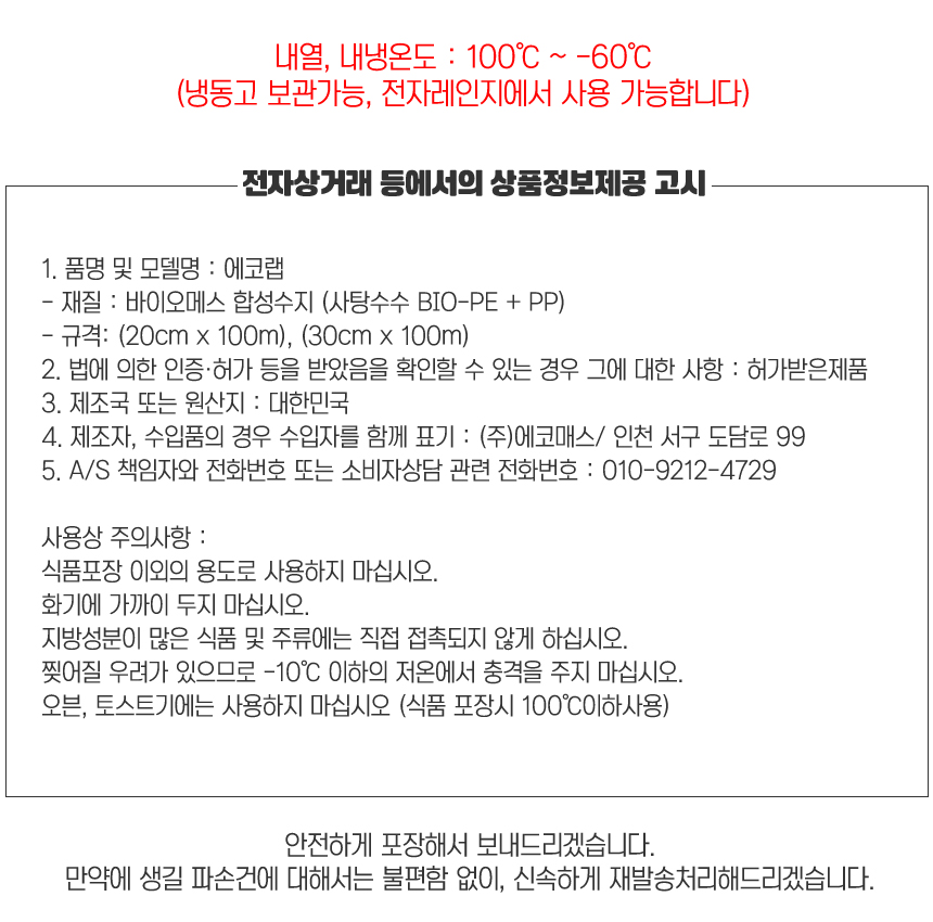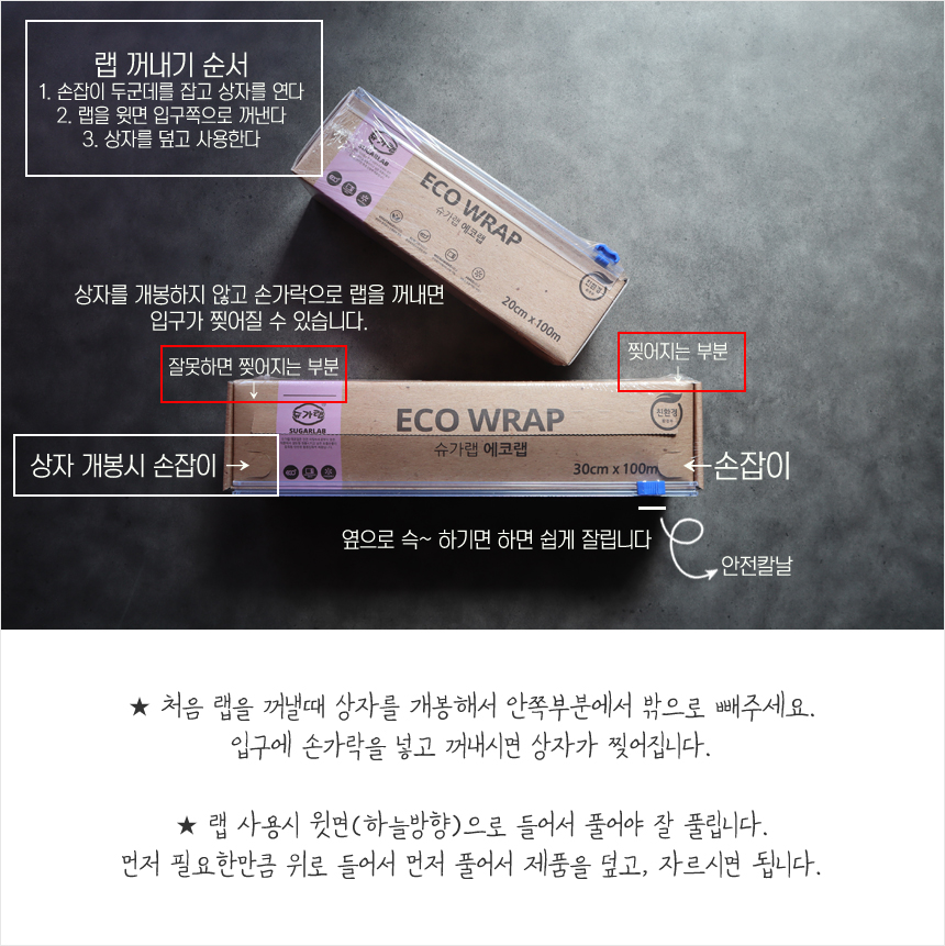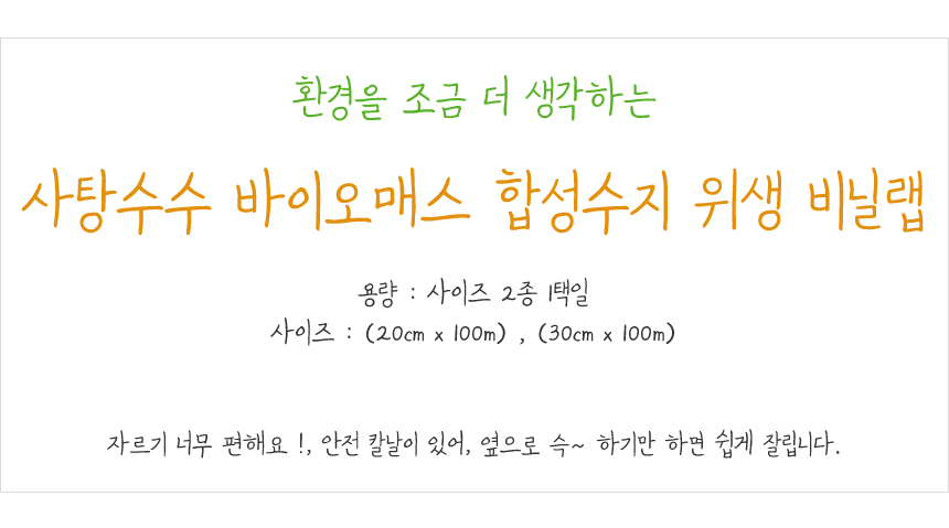 사탕수수 바이오메스 합성수지 자르기 편한 위생랩 비닐랩