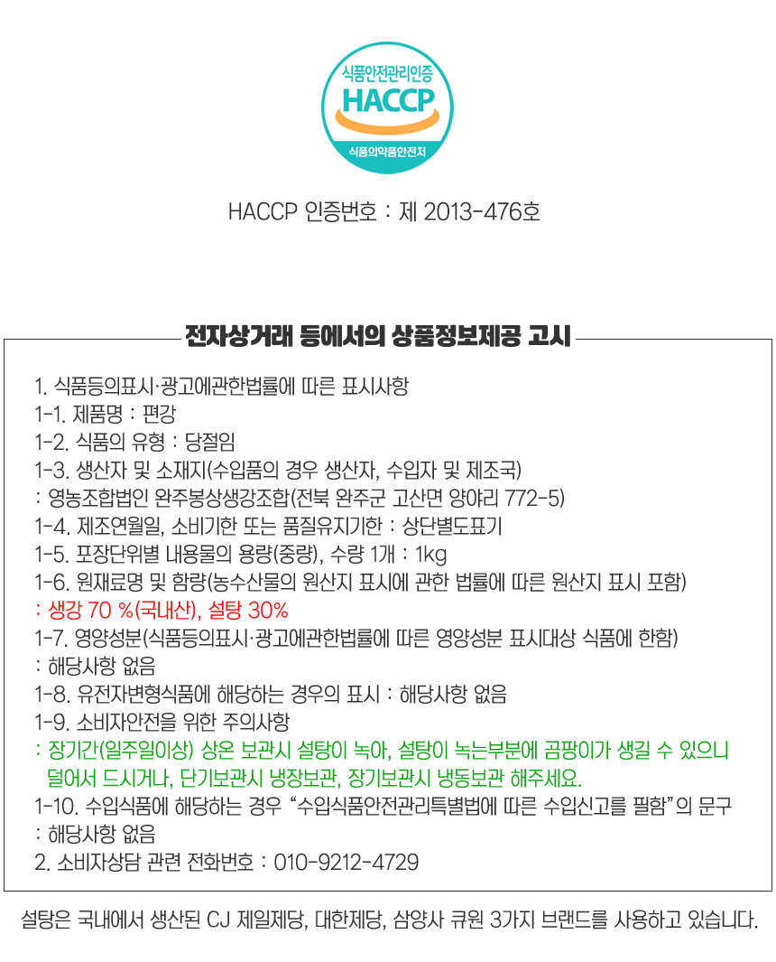 봉동 생강편강 1kg 생강편 절편 과자