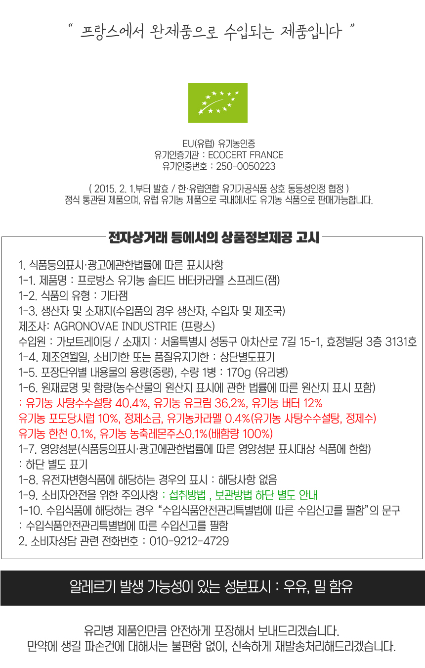 프랑스산 유기농 밤잼 밤스프레드 글루텐프리