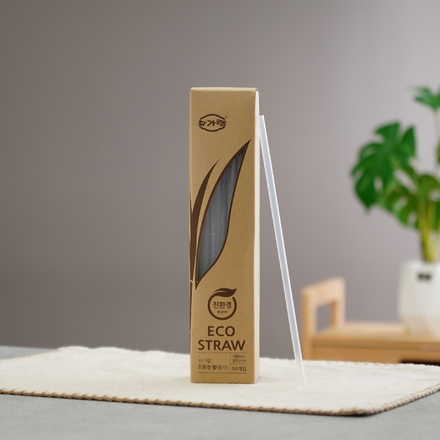 사탕수수 바이오매스 합성수지 빨대 대 사이즈 50개입 (25cm x 6mm) 개별포장