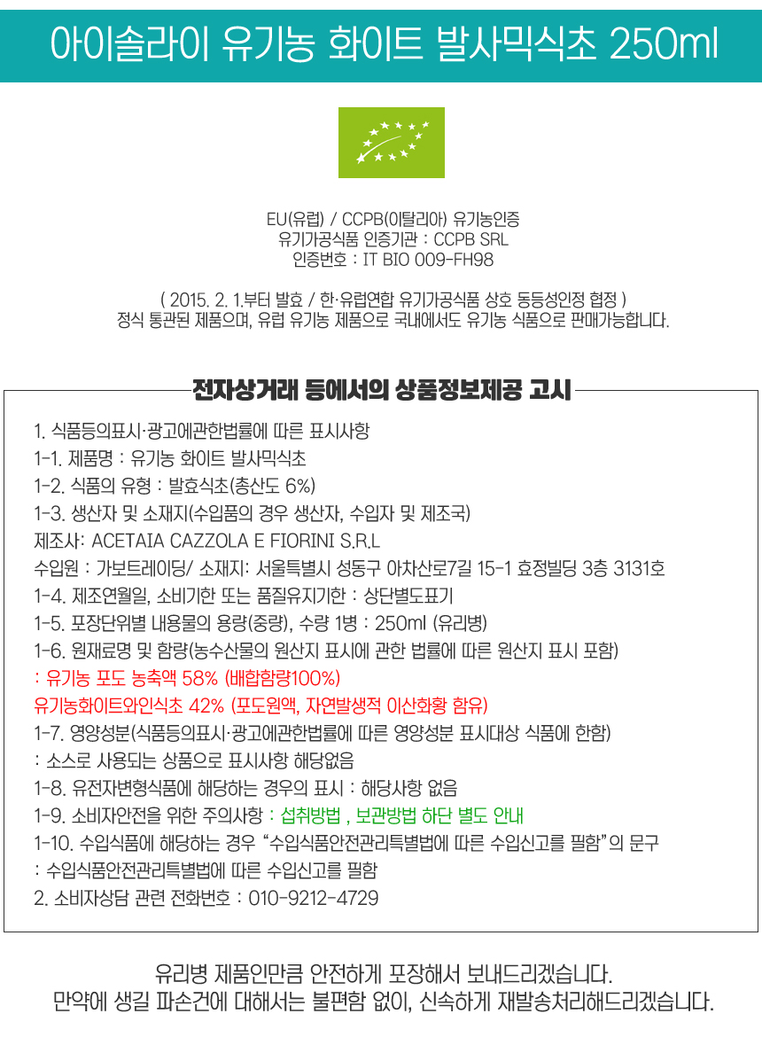 화이트 발사믹식초는 CONDIMENTO(조미료,향신료)에 해당되어 I.G.P 로고가 없습니다.