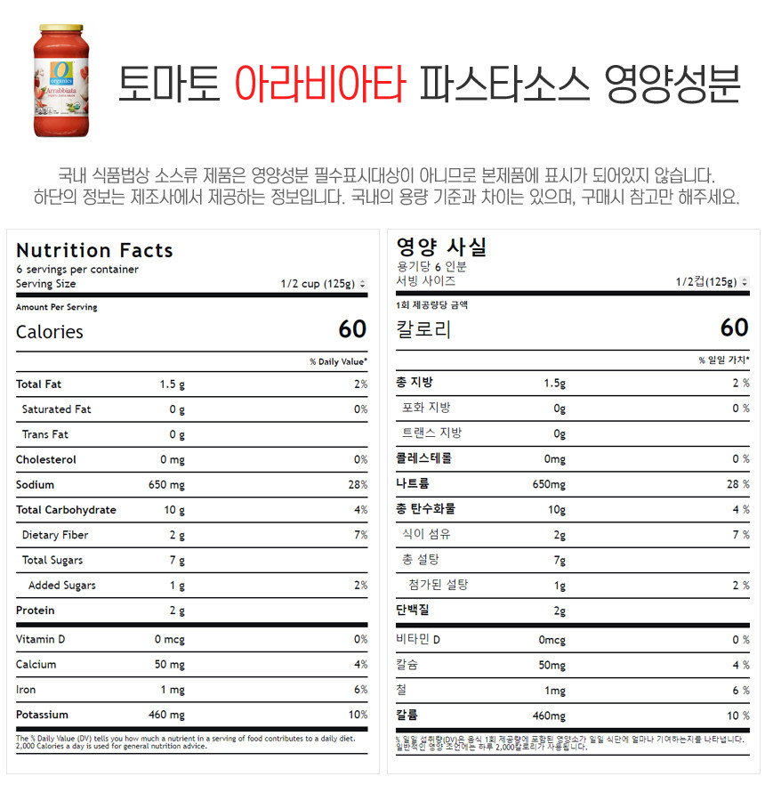 아라비아타(매콤) 토마토 파스타소스 :