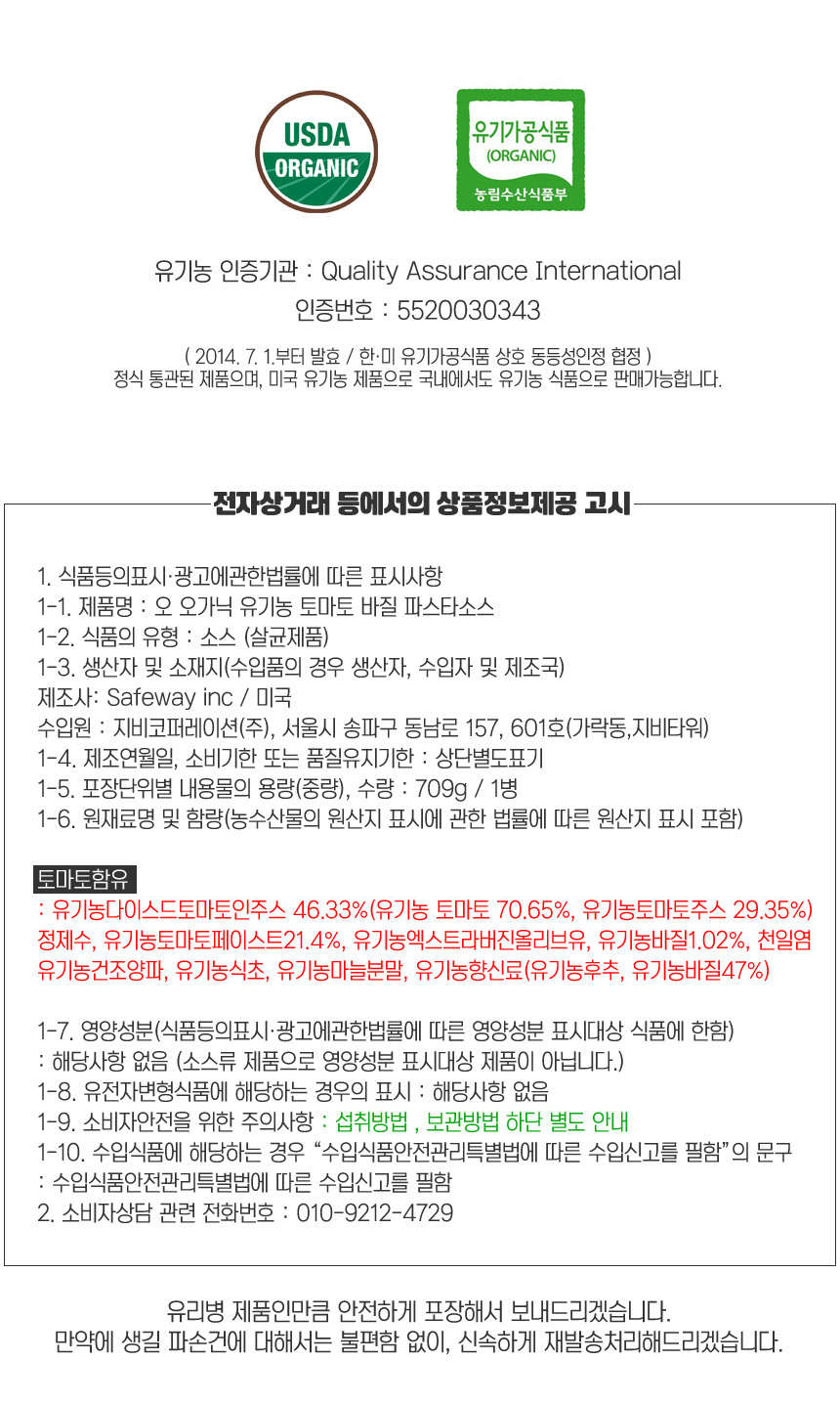 95%이상 유기농 원재료를 사용하여 만든