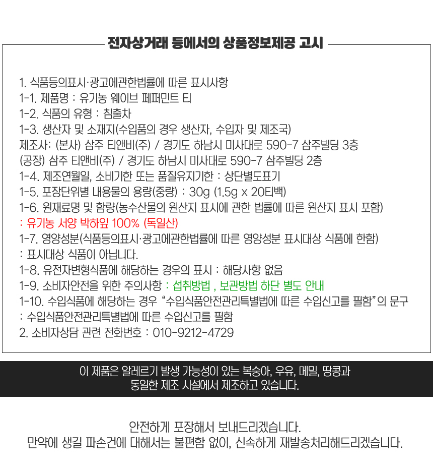유기농 허브티 페퍼민트차 30g(1.5gx20티백)