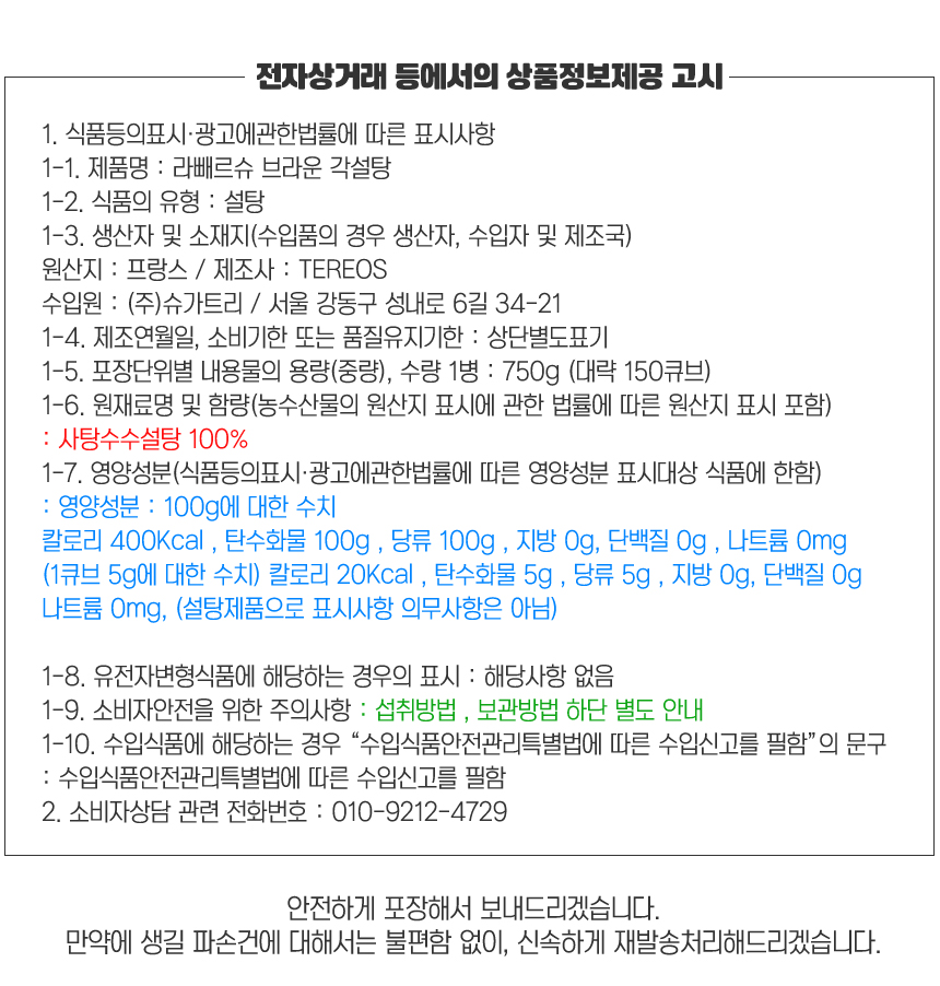 호평을 받는 브랜드입니다. 라빼르슈 브라운 각설탕은,
